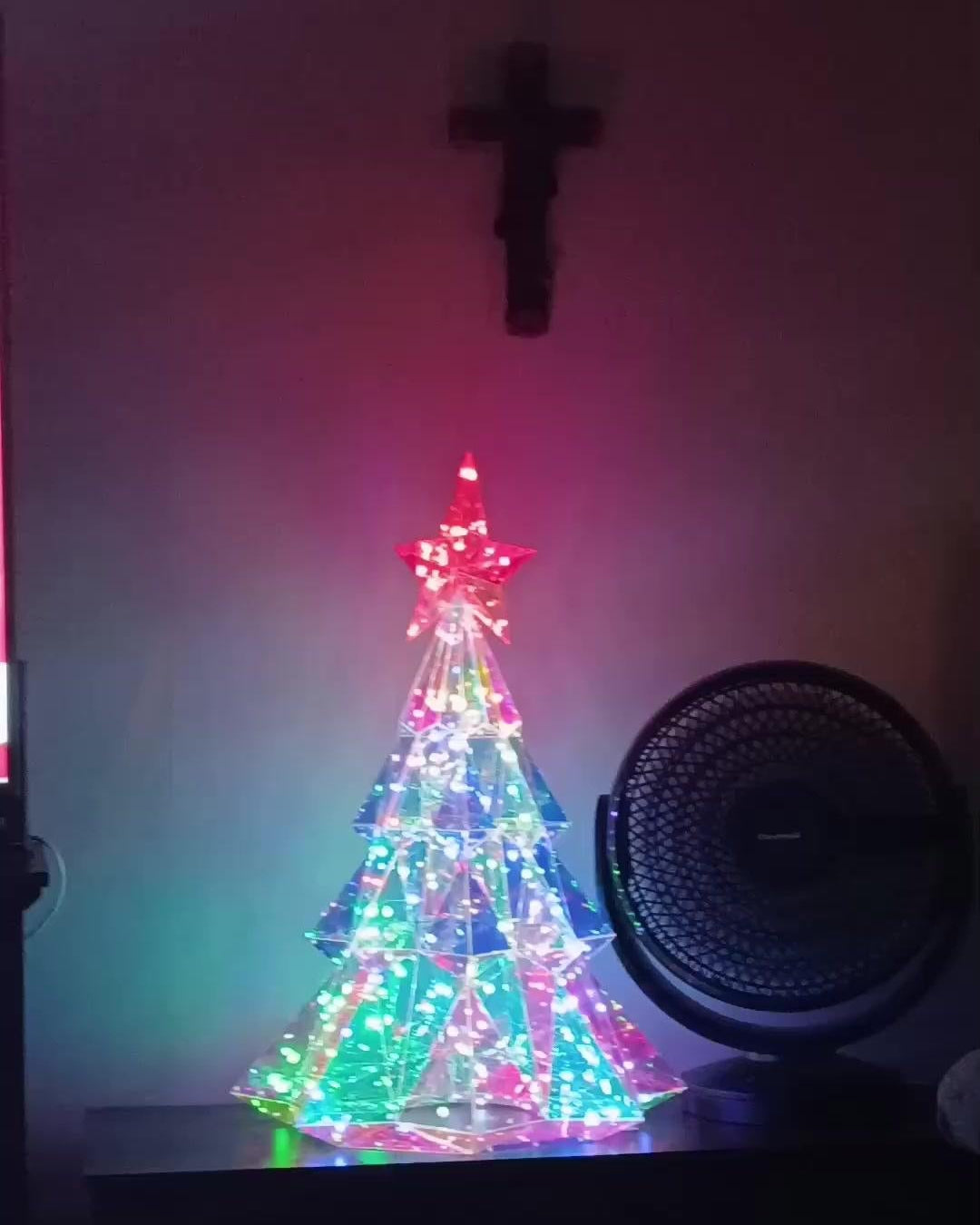 I've always wanted a prismatic Christmas tree since they first appeared in stores last year. Granted this is at a much smaller scale than I wanted, I still couldn't pass this up and couldn't be more pleased!It really is captivating to look at and found it's perfect for our bath vanity. It comes already assembled which is a plus! No charging block just the cable which is normal nowadays but doesn't make it any less annoying trying to find a spare block. It's made of a malleable iridescent plastic that can easily be crushed if not properly stored. Overall, I couldn't be happier with the magical joy it's brought me.